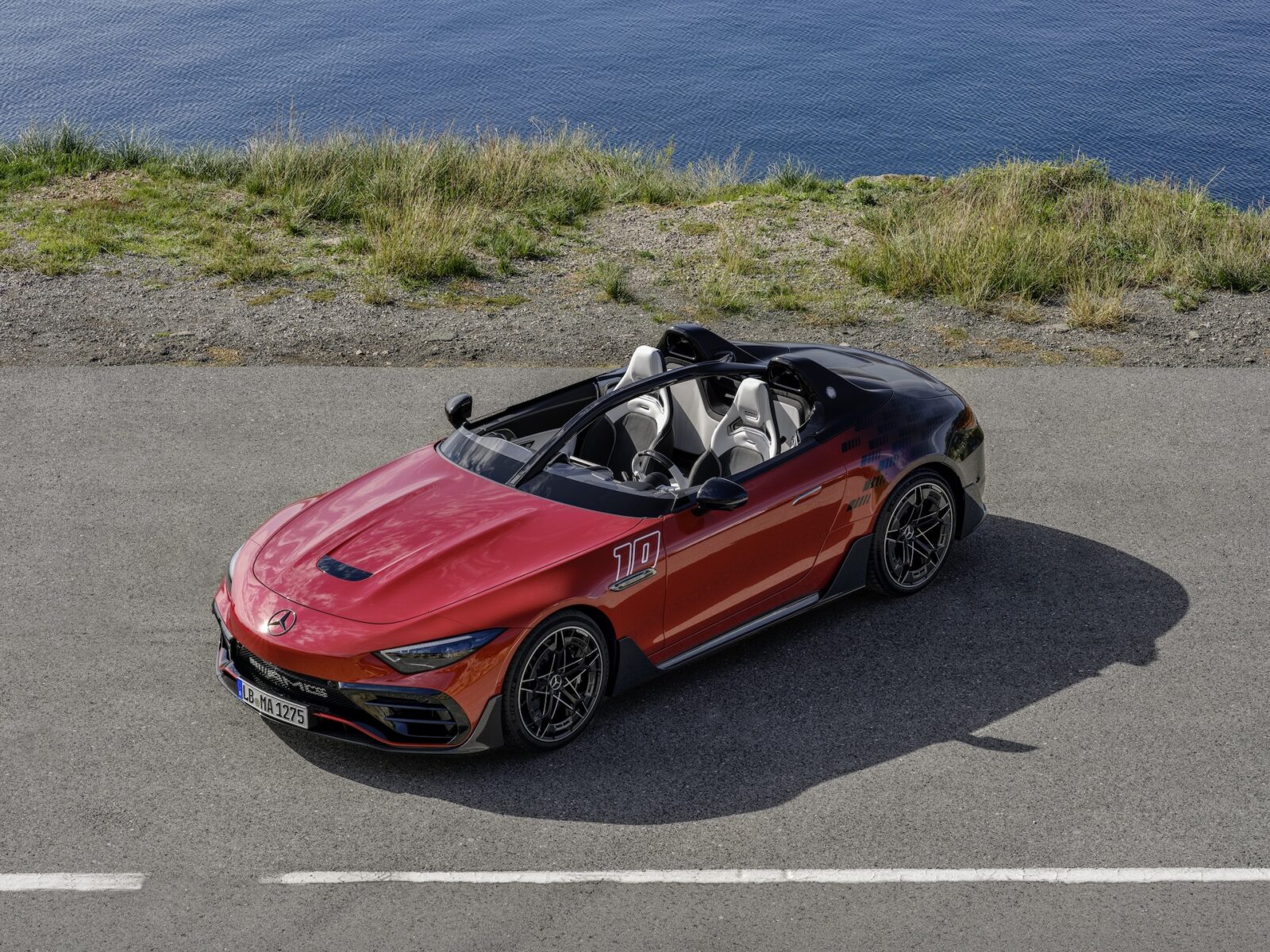 Met zijn brede luchtinlaat, opschrift ‘AMG’ en donkere, verchroomde Mercedes-ster op de softnose lijkt het front op dat van de Mercedes-AMG One. De sportwagen beschikt ook over een aerodynamisch geoptimaliseerde motorkap. Aerodynamische, scherp getekende elementen van zichtcarbon in het onderste deel van de carrosserie vormen een sterk contrast met de sensuele, ronde vormen van het bovenste deel. Ook het kofferdeksel en de achterdiffusor zijn aerodynamisch geoptimaliseerd. Bij het ontwerp van beide elementen is rekening gehouden met het ontbreken van een dak.