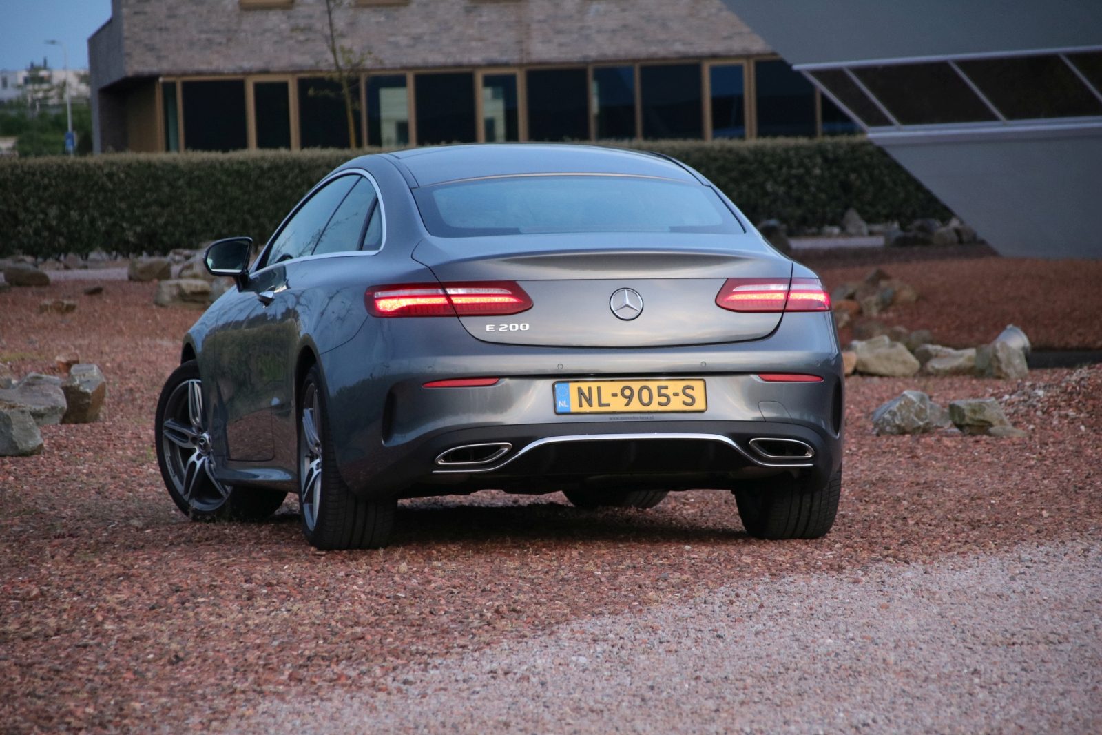 Wij rijden de Mercedes-Benz E 200 Coupé met 2,0-liter viercilinder benzinemotor. Dit turboblok levert 135 kW (184 pk) en 300 Nm. Een 9-traps automaat is standaard, evenals het 15 mm verlaagde onderstel. Onze testauto is tevens voorzien van het optionele Dynamic Body Control met verstelbare demping en bijbehorend Dynamic Select-systeem waarmee je kunt schakelen tussen de rijstanden Comfort, Sport en Sport+.