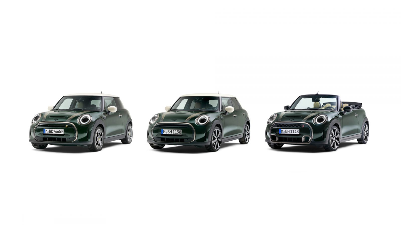We noemen bijvoorbeeld de carrosseriekleur ‘Rebel Green’. Overigens met excuses van Mini aan de eigenaren van een MINI John Cooper Works; de donkergroene kleur was voorheen exclusief voor hun uitvoering bedoeld. Het dak en de buitenspiegelkappen zijn uitgevoerd in wit, maar over zwart doet MINI niet moeilijk. Verder zien we bepaalde designaccenten in de stijlvolle kleur ‘Resolute Bronze’, zoals de omlijsting van de koplampen, grille en achterlichten.