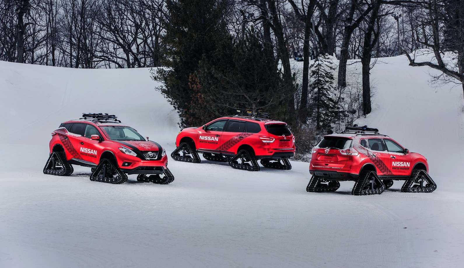 Volgens Nissan zijn de Winter Warriors de perfecte auto’s om ijs en sneeuw te trotseren. Gezien de uitrusting van de studiemodellen geen onzinnige uitspraak. Nissan heeft de drie SUV’s voorzien van rupsbanden van het Amerikaanse bedrijf Dominator Tracks. De rupsbanden hebben een fors rupsoppervlak zodat de grip onder alle omstandigheden optimaal is. Productieplannen zijn er niet. Eigenlijk best jammer, want voor een ritje in deze extreme Nissan Rogue, Murano en Pathfinder hadden wij direct getekend!