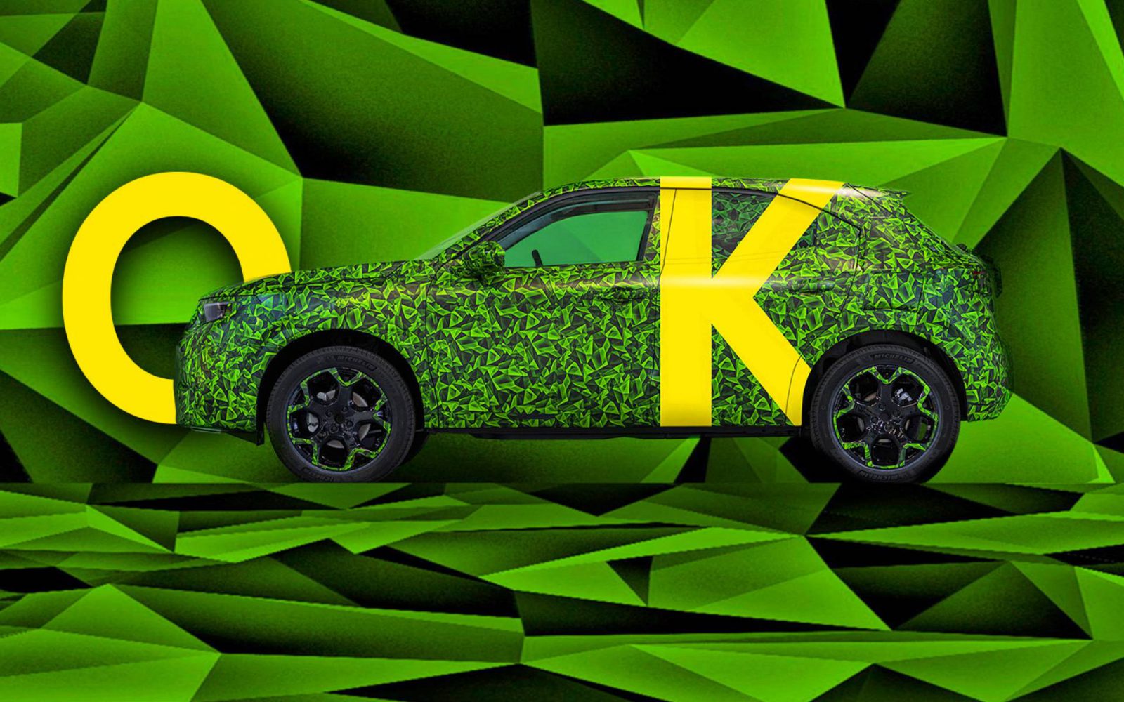 De testauto’s hebben opvallende camouflage: een grote gele ‘K’ op groen-zwarte graphics. De ‘K’ verwijst naar Mokka.