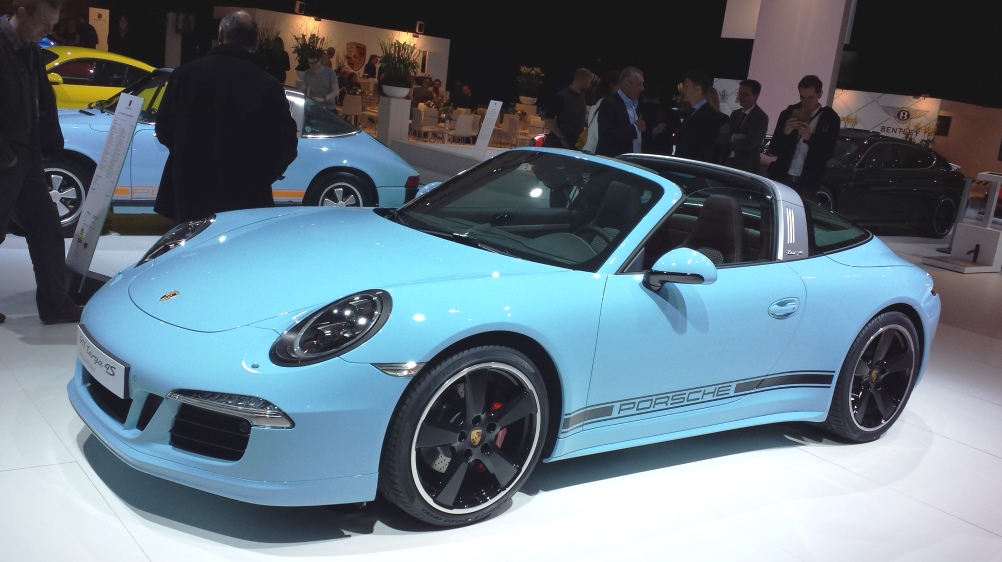 AutoRAI, hal 8 – Behalve een felgele en een knalrode staat bij Porsche ook een babyblauwe sportwagen in de spotlights: de nieuwe 911 Targa 4S Exclusive Edition. Deze bijzondere versie is speciaal voor Nederland ontwikkeld. Op de AutoRAI debuteert ook de Cayman GT4!