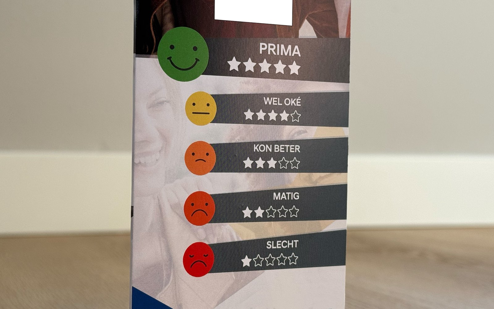 “Vindt u onze dienstverlening ook vijf sterren waard? Laat dan uw review achter”