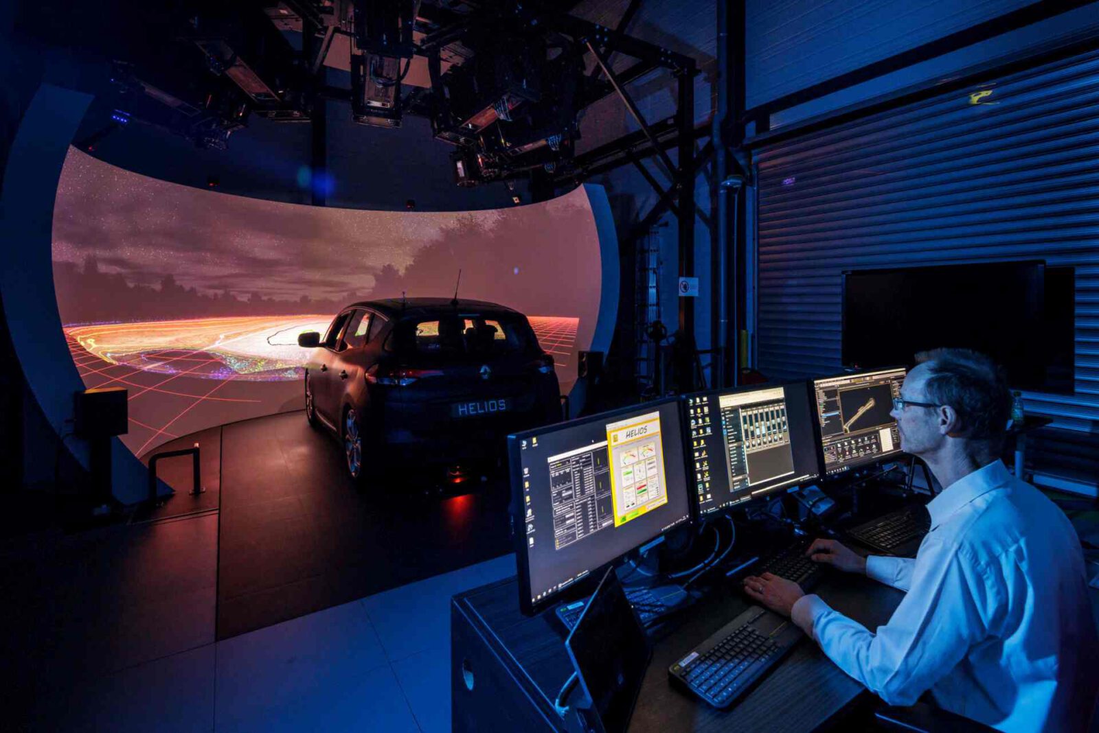 Meer dan zeventig ingenieurs werken in het nieuwe Immersive Simulation Centre van Renault . Ze kunnen digitale wegen maken en echte rijomstandigheden simuleren. Ze kunnen ook een digitale tweeling van een auto bouwen, inclusief hoe deze op de weg presteert en hoe de software werkt. Deze digitale tweeling wordt vervolgens onderworpen aan miljoenen testsituaties in de cloud.