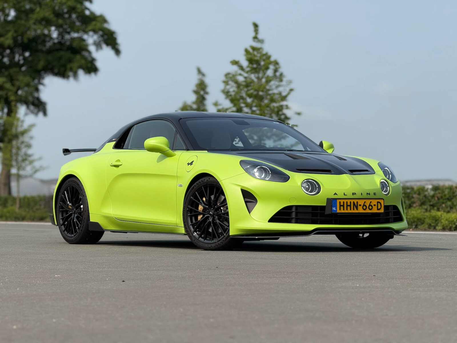 De Alpine A110R is een van de weinige auto’s waarbij aerodynamica en esthetiek hand in hand gaan. De ‘gooseneck’ achtervleugel genereert echte downforce, de frontsplitter en diffuser zorgen voor stabiliteit bij hogere snelheden. Dat allemaal verpakt in een spannend design dat zelfs in stilstand snelheid uitstraalt. Kies je hem in een uitgesproken kleur (zoals de opvallende mat geel-groene tint van de persauto), dan steel je overal de show.
