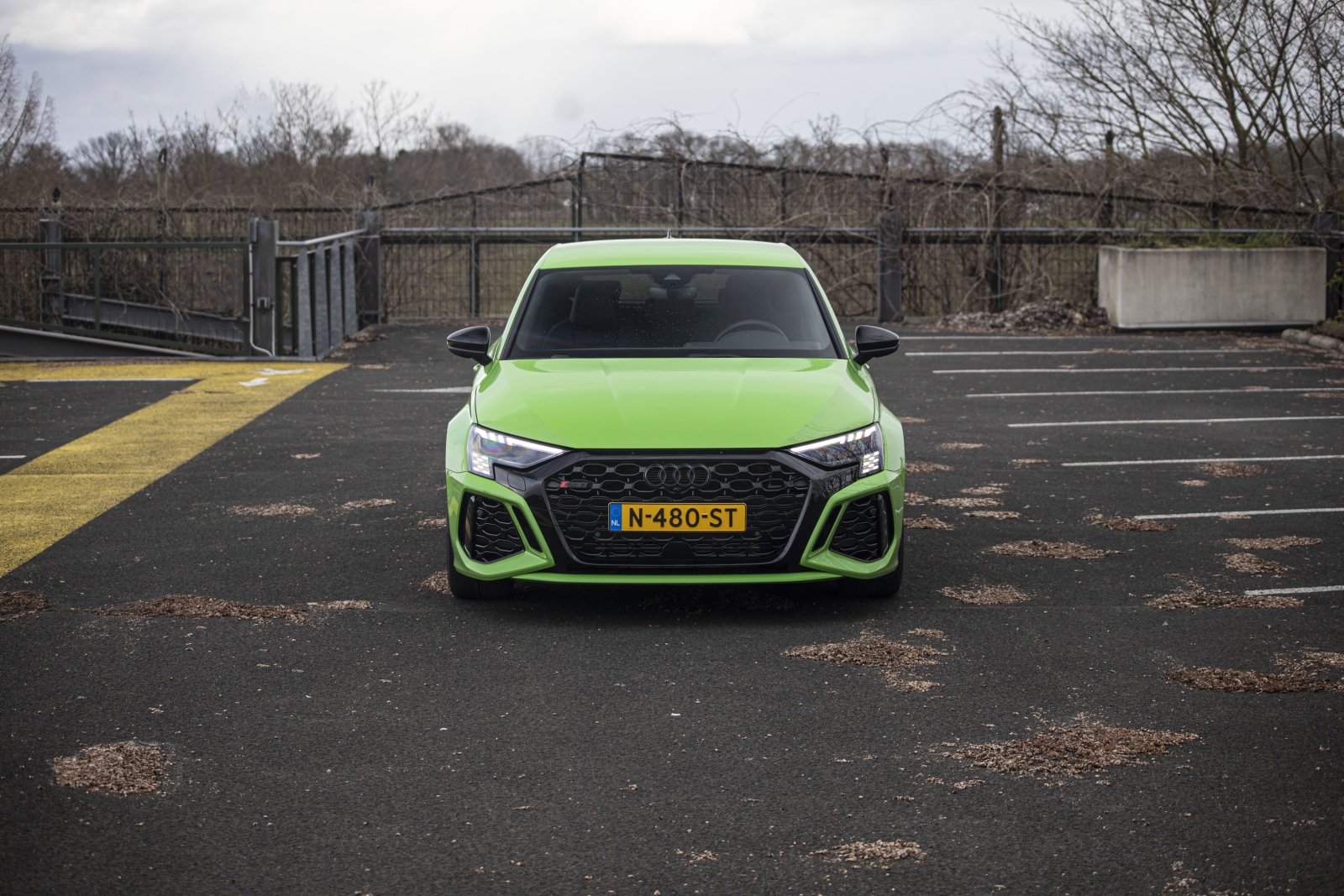 De groene gifkikker stopt pas bij 250 km/u met versnellen, tenzij je wat extra geld overmaakt naar Audi en het RS-dynamic-pakket kiest. Dan grijpt de snelheidsbegrenzer pas in bij 290 km/u. Je krijgt dan ook keramische remschijven, zodat de RS 3 ook weer snel van 290 naar 0 km/u komt. Tijdens onze testweek hebben wij het niet geprobeerd, bijna 300 km/u in een ‘Audi A3 hatchback’, maar we geloven onmiddellijk dat het mogelijk is.