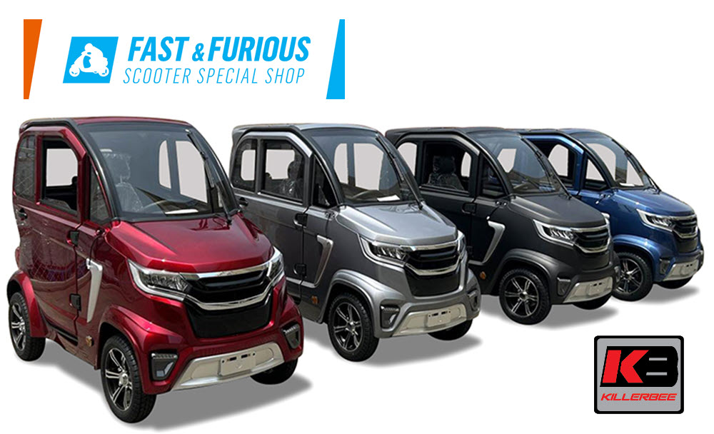 Bij Fast & Furious Scooters ben je aan het juiste adres als je op zoek bent naar een betrouwbare, rijbewijsvrije auto zoals de Killerbee E-Car microcar. Als specialist in 45 km voertuigen bieden zij een uitgebreid assortiment van de nieuwste modellen, met diverse opties en uitvoeringen die aansluiten bij jouw wensen en budget.