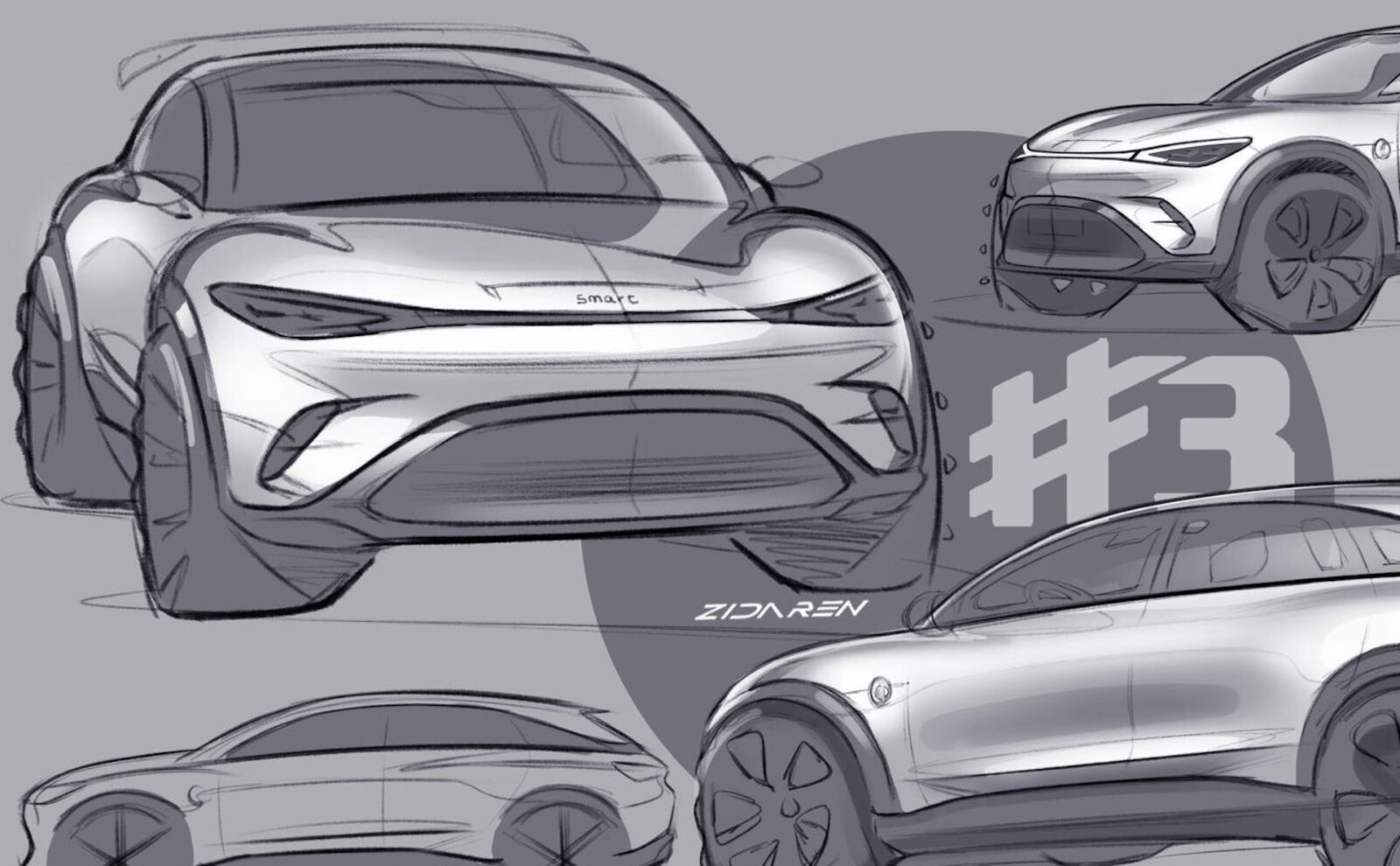 Smart #3 komt eraan, dit zijn de eerste schetsen