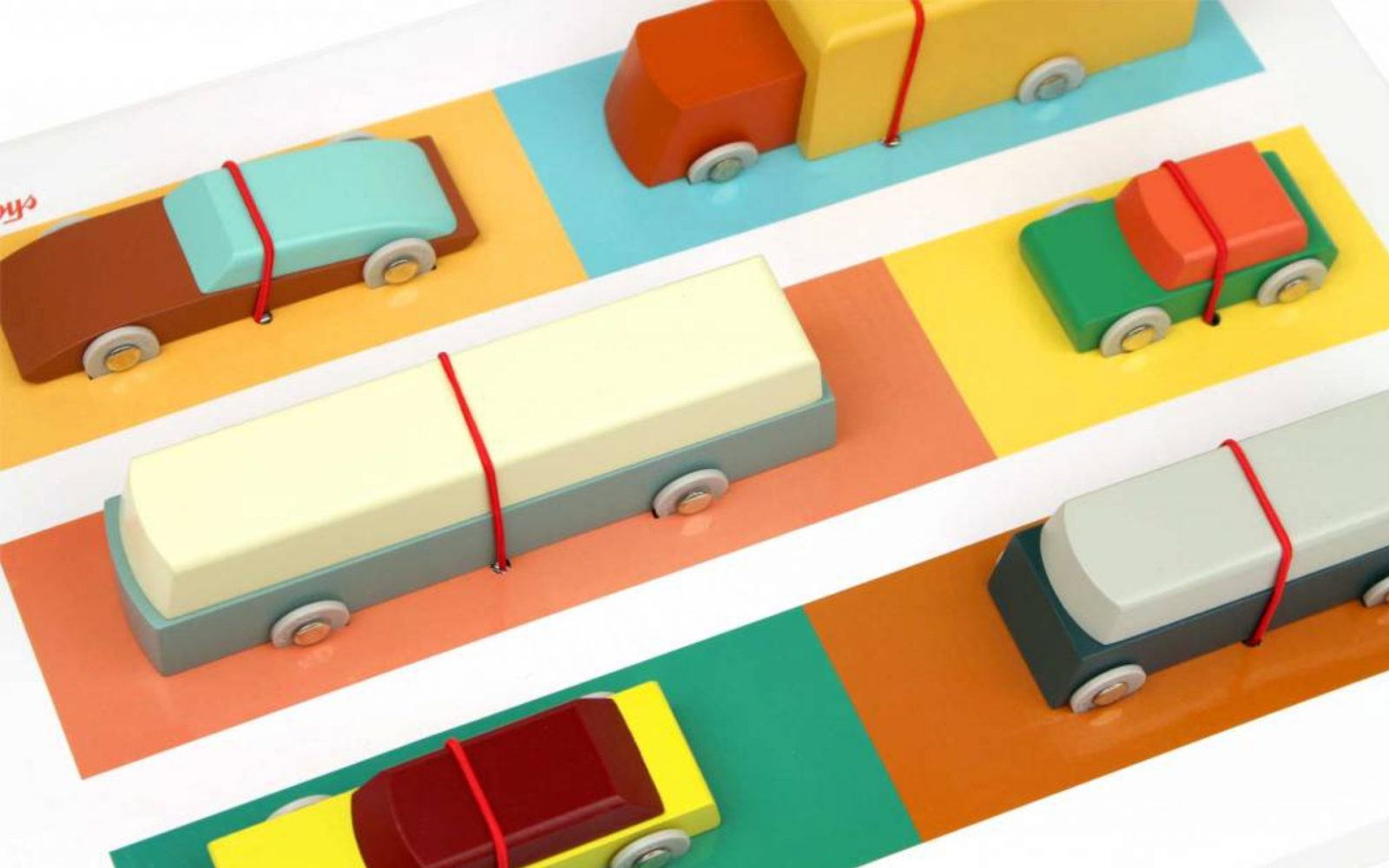 “De houten Duotone Cars zijn bijzonder decoratief met hun simpele vormen en secundaire kleuren”