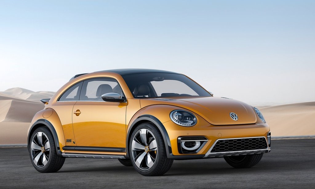 Volkswagen biedt van meerdere modellen een Cross-versie aan, die ietwat hoger op z’n wielen staat en opvalt door stoere exterieurdelen. Van de Beetle is er nog geen Cross-versie, maar dit zou hem zomaar kunnen zijn. Volkswagen heeft namelijk het bekende recept op de Beetle toegepast. De Beetle Dune Concept staat vijf centimeter hoger dan de overige Beetle-varianten. Cross-elementen als zwarte spatbordverbreders, de grotere spoorbreedte en opvallende lichtmetalen 18-inchwielen maken de ruige uitstraling compleet. Andere opvallende details zijn de led-mistlampen en de speciale houders voor attributen als ski’s en snow-/sandboards. Het interieur onderscheidt zich door de speciale bekleding en de touchscreen met Amoled-technologie voor haarscherp beeld. Hoewel de Volkswagen Beetle Dune Concept anders doet vermoeden, heeft hij geen vierwielaandrijving. De voorwielen worden aangedreven door een 155 kW (210 pk) sterke 2.0 TSI-benzinemotor, die is gekoppeld aan een DSG-automaat.