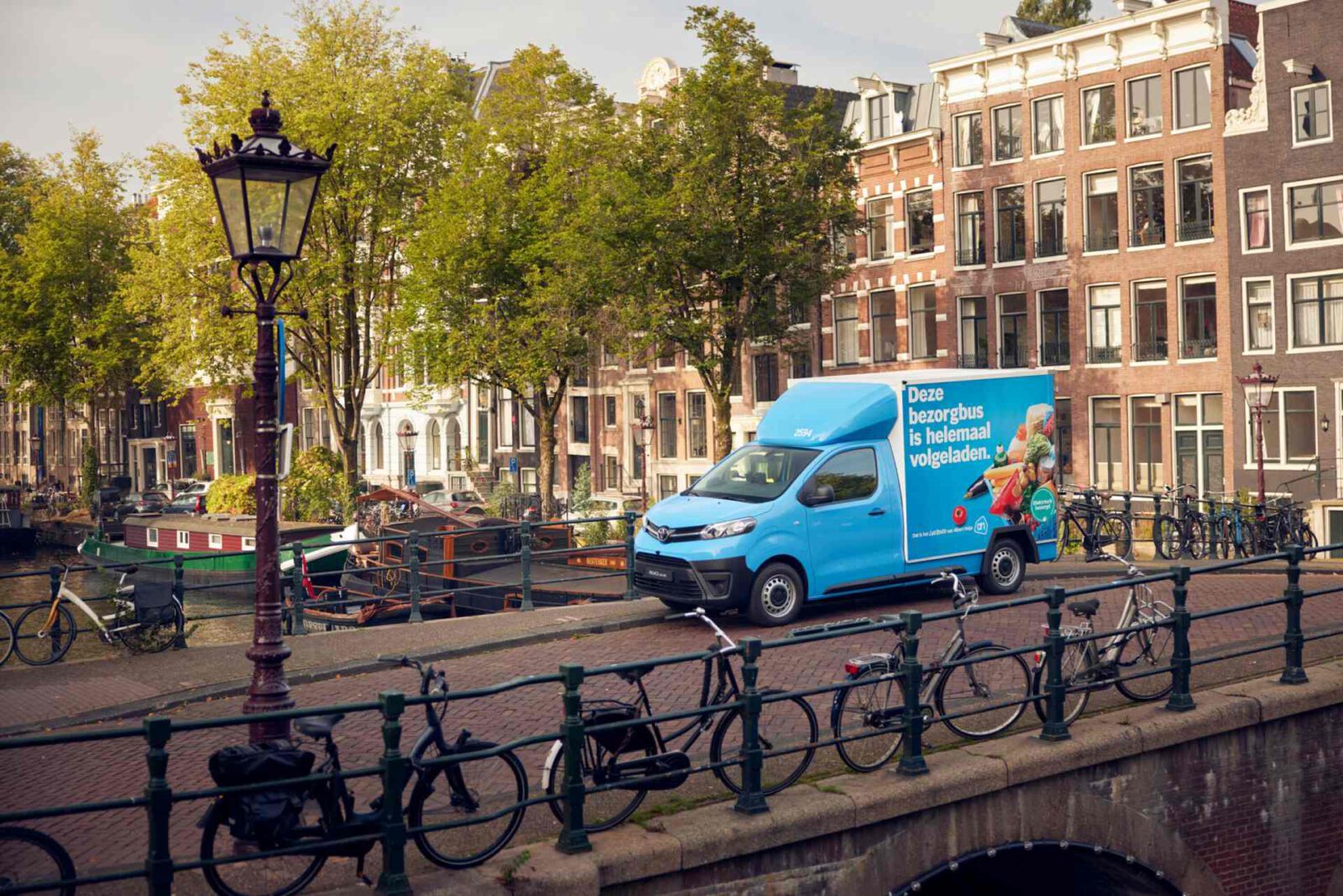 Toyota en Albert Heijn starten een proef met elektrische bezorgwagens op basis van de Toyota Proace Electric. Deze compactere bezorgwagens gaan het komende kwartaal rijden in de binnenstad van Amsterdam.