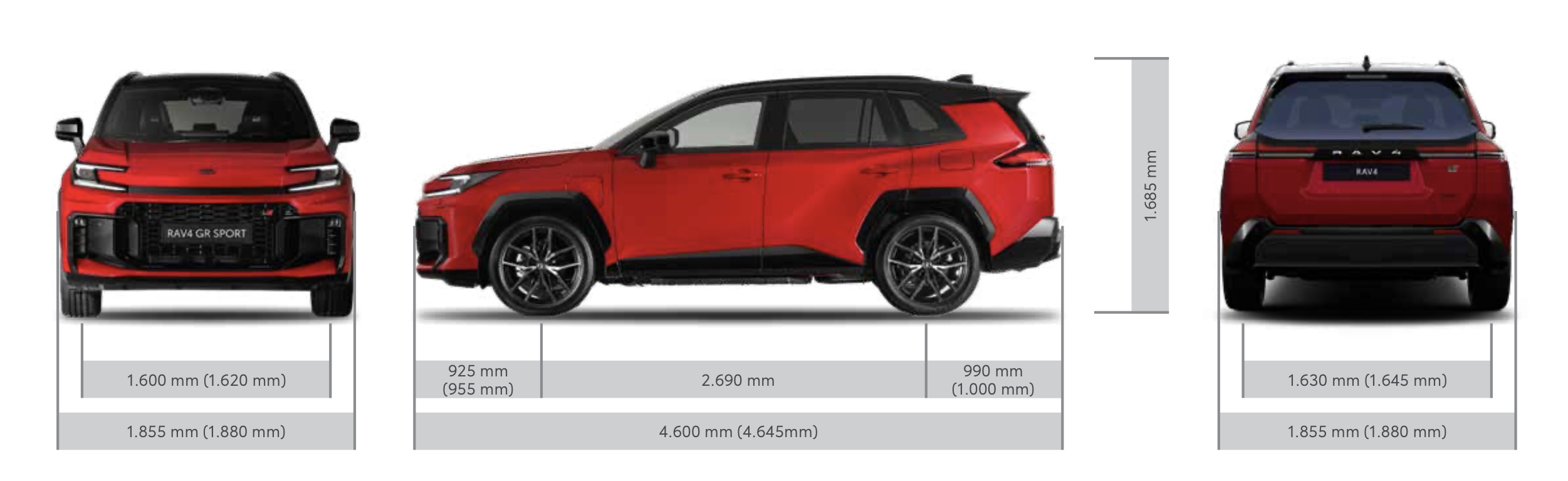 Als sportieve topuitvoering valt de RAV4 GR SPORT direct op door zijn sportieve designwijzigingen en unieke 20-inch lichtmetalen velgen en rode remklauwen. Als GR SPORT heeft de RAV4 een uniek design voor de voorbumper met hoogglans zwarte details. Ook de wielkastranden zijn hoogglans zwart, net als een sierlijst voor de achterbumper. Net als de First Edition wordt de RAV4 GR SPORT altijd geleverd in een bi-tone kleurstelling, waaronder de kleur Emotional Red, uniek voor de GR SPORT-uitvoering.