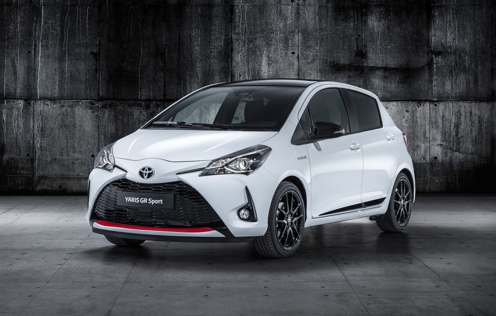 Onder de motorkap geen 1.8 met dikke supercharger. Welnee, Toyota levert de Yaris GR Sport uitsluitend als vijfdeurs met hybride aandrijflijn. De andere kenmerken: in zwart uitgevoerde raamlijsten, honingraatgrille, buitenspiegelkappen en omlijsting van de voorste mistlampen, een zwart dak, koplamunits met zwarte details, een achterspoiler, zwarte 17-inch lichtmetalen wielen, Bridgestone Potenza RE50-banden in de maat 205/45 R17, sportstoelen met donkergrijze ultrasuède bekleding, GR-logo en zilverkleur stikwerk, een compact driespaaksstuurwiel en meer.
