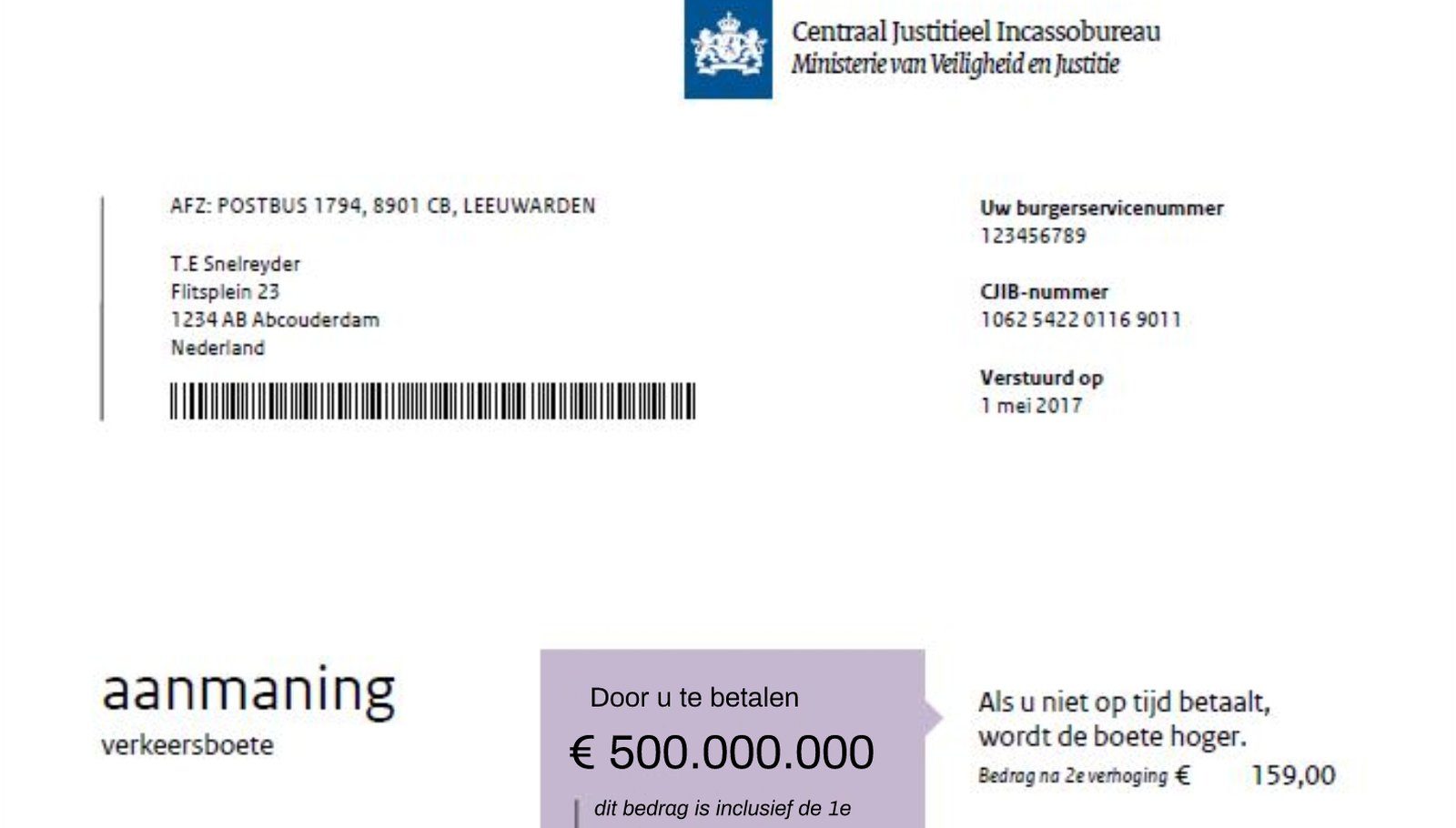 Vroeger kwam het nog wel voor dat je, als je de boete gewoon negeerde, deze ook niet meer hoefde te betalen. Nu kom je daar echt niet meer weg. Als je niets betaalt, krijg je al snel een eerste en een tweede aanmaning thuisgestuurd. Het boetebedrag wordt dan vaak ook nog eens hoger. Als je het bedrag daarna nog steeds niet overmaakt, wordt het innen van de boete overgedragen aan het Centraal Justitieel Incassobureau; daar betaal je 9 euro administratiekosten voor.