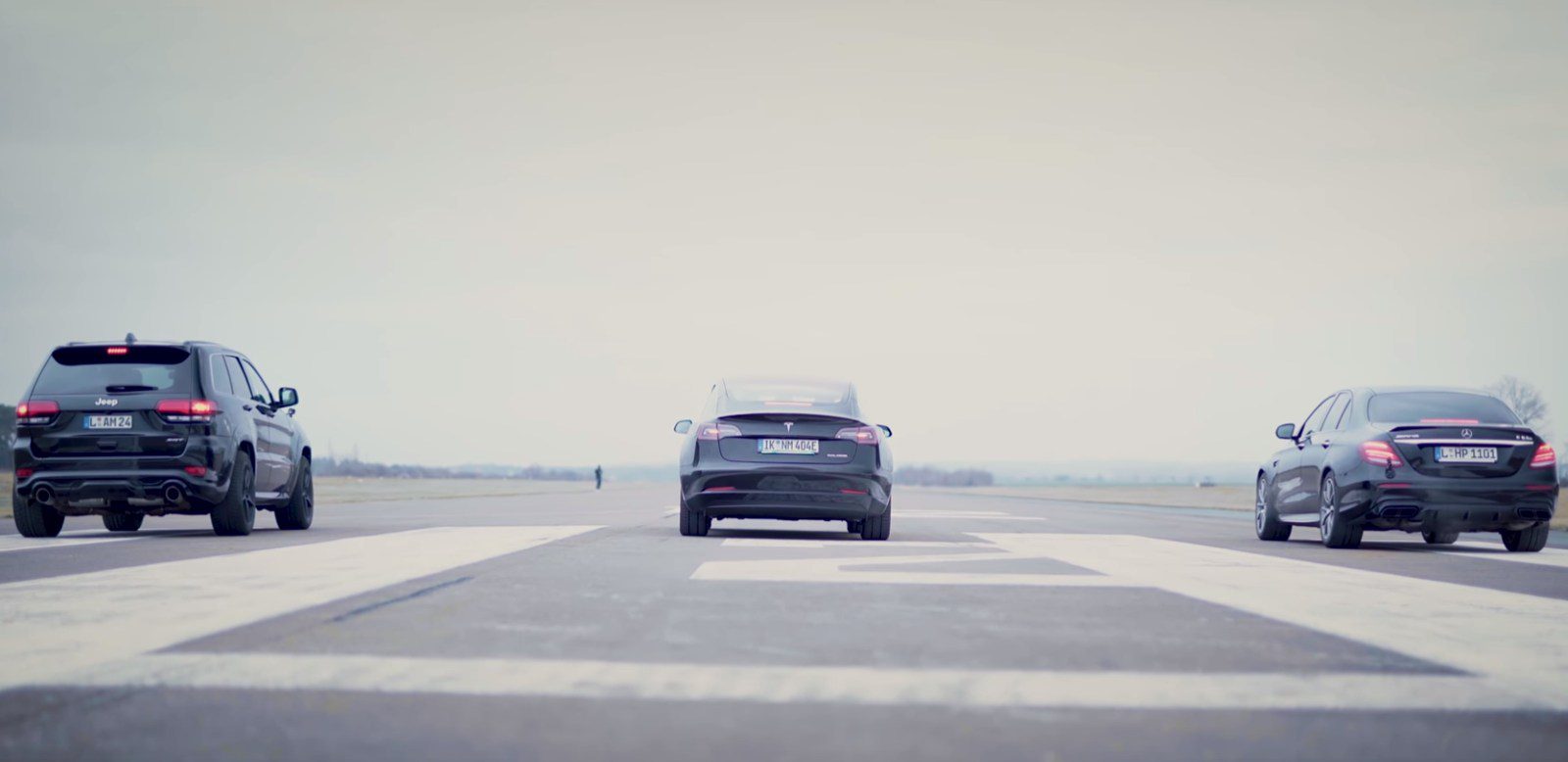 E 63S, Model 3 en Grand Cherokee SRT 8 nemen het tegen elkaar op