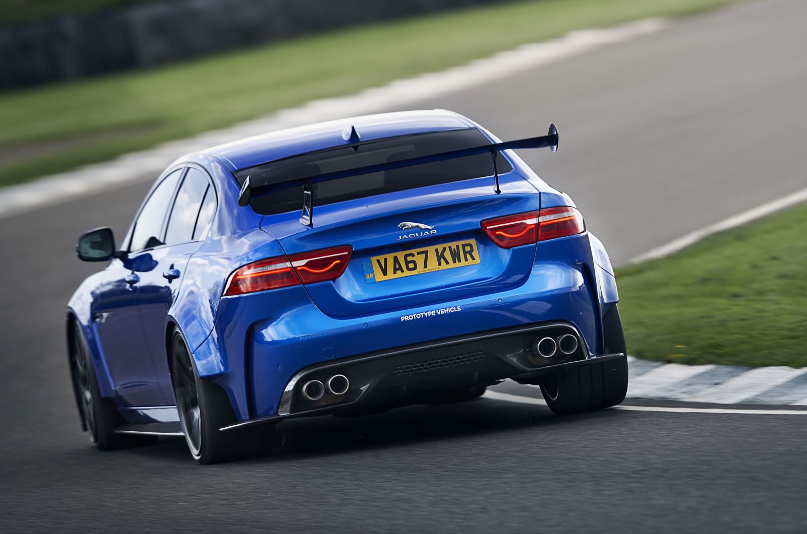 De enige carrosseriedelen die hetzelfde zijn als bij de reguliere Jaguar XE (rijtest) zijn het dak en het plaatwerk van de voorportieren. De motorkap met ventilatiesleuven en de uitgeklopte voorspatborden zijn van lichtgewicht koolstofvezel.