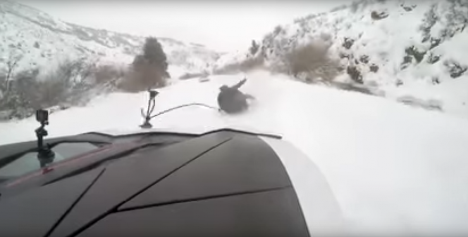 VIDEO: in de sneeuw, achter een Lambo Gallardo…
