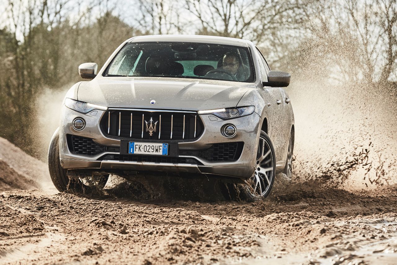 Hoe ver de Levante in het terrein komt, wordt snel duidelijk: héél ver. De Maserati is dan ook een terreinauto van de nieuwste generatie. Je hoeft nauwelijks iets te doen om je onoverwinnelijk te voelen, behalve een beetje gas geven en sturen. De Levante kruipt zwoegend maar vastberaden een hoge steile zandheuvel op en remt automatisch tijdens de afdaling. Hij tilt zonder problemen een wiel op om hierna vrolijk zijn weg in het terrein te vervolgen en ‘tijgert’ als een onverschrokken marinier door de modder. Een Jeep zou er bang van worden.