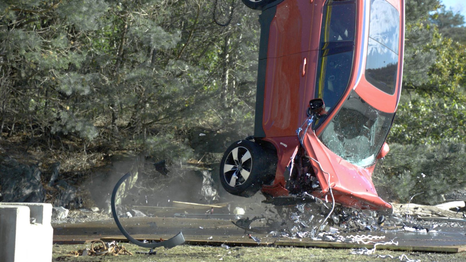 Met de extreme crashtest bootst Volvo de enorme impact na die het gevolg is van ingrijpende ongevallen. Hiermee kunnen reddingsdiensten zich nog beter voorbereiden op alle mogelijke crashscenario’s. De val van de kraan is een toevoeging op de gebruikelijke botsproeven die het Volvo Safety Centre al decennialang uitvoert.