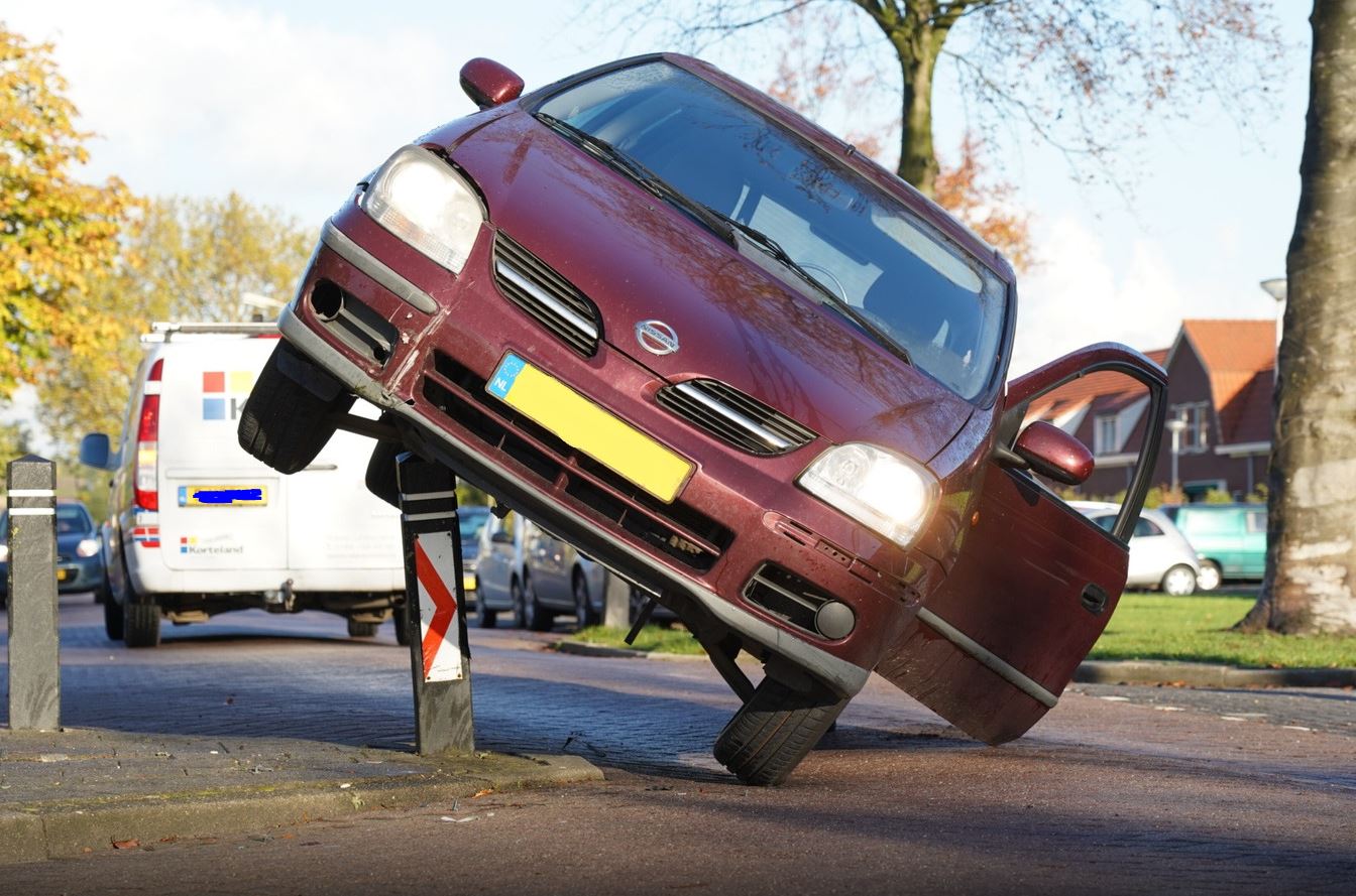 De enige juiste vraag bij het zien van deze vreemde parkeeractie in Nieuw-Lekkerland: hoe dan?! We kunnen je deels antwoord geven: de bestuurster gaf aan verblind te zijn door de zon… Enfin, de bestuurster en jongen konden zelfstandig de auto uit en raakten niet gewond. Ook de Nissan Almera Tino maakt het naar omstandigheden goed.