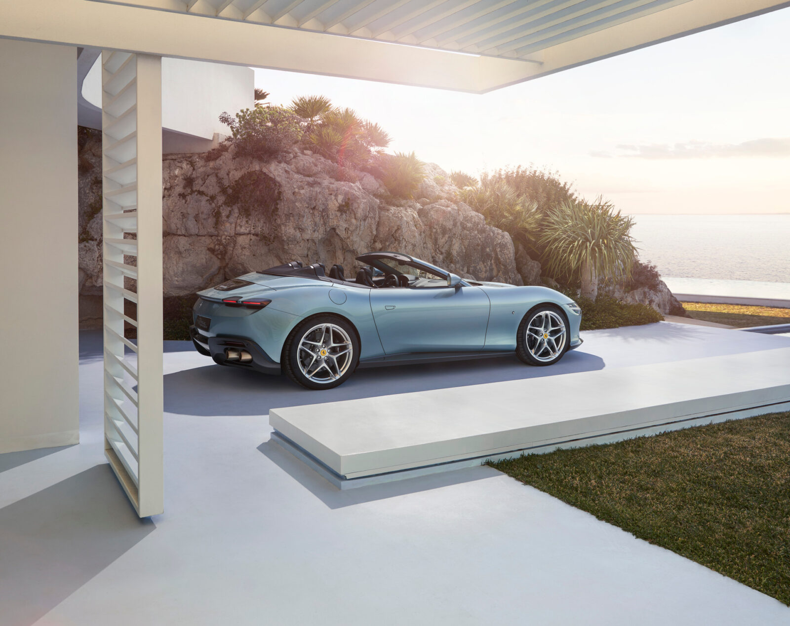 De Ferrari Roma Spider volgens de Italianen een moderne interpretatie van de chique, avontuurlijke lifestyle van de jaren ’50 en ’60. De auto is uiteraard gebaseerd op het 2+ concept van de Ferrari Roma V8, met als grote verschil een softtop, die 54 jaar na de Ferrari 365 GTS4 uit 1969 voor het eerst weer terugkeert bij een Ferrari-model met de motor in het vooronder. Voor andere Spider-modellen koos Ferrari keer op keer voor een harde dakconstructie, vaak gemaakt van koolstofvezel of aluminium.