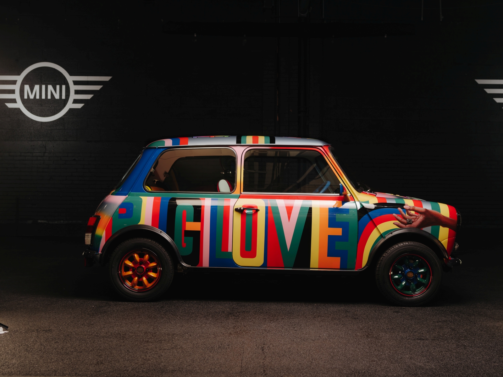 In opdracht van Mini heeft de Britse kunstenares Lakwena Maciver een klassieke Mini Electric stevig onder handen genomen. Het in- en exterieur is voorzien van alle kleuren van de regenboog en zelfs de wielen hebben elk een ander kleurtje gekregen. Hoewel het specifieke model uit 1986 komt, doet doet deze Mini dankzij het kleurenschema en de woorden BIG LOVE sterk denken aan de hippie-tijd.