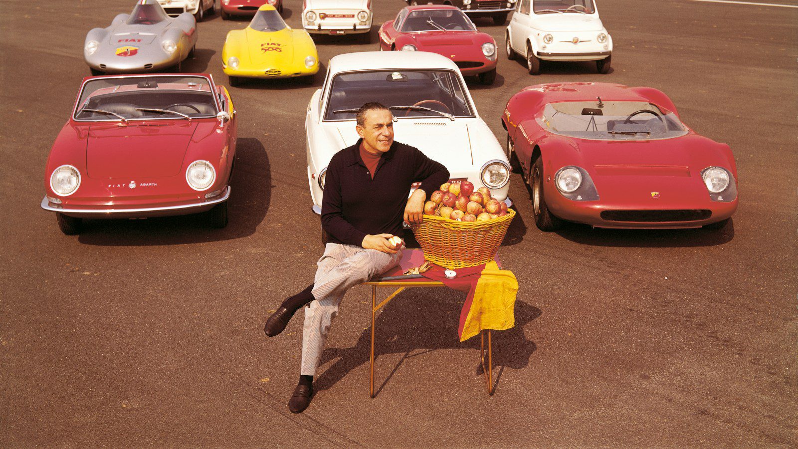 In 1965 wilde Carlo Abarth zelf een snelheidsrecord vestigen, maar er was één probleem. De 57-jarige Carlo was nogal een potige kerel die niet gemakkelijk in de cockpit van de kleine Fiat Abarth 1000 Monoposto Record pastte. Abarth nam daarom rigoureuze maatregelen en waagde zich op doktersadvies (!) aan een appeldieet.
