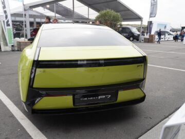 Xpeng heeft intussen ook wat technische details vrijgegeven. De nieuwe P7 verschijnt als achterwielaangedreven uitvoering met 270 kW (367 pk) en als vierwielaangedreven variant waarbij de voorste motor 270 kW (367 pk) levert en achter nog eens een 167 kW (227 pk) sterke elektromotor is geplaatst. De sterkste versie sprint in 3,7 seconden naar 100 km/u en haalt een topsnelheid van 230 km/u. Brembo-remmen en luchtvering – waarmee de auto vijf centimeter in hoogte kan variëren – zijn standaard.